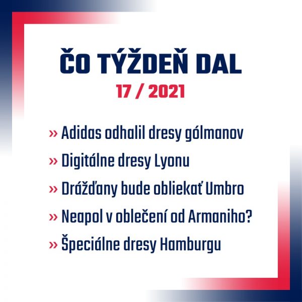 Prvý májový týždenník prináša najmä novinky z konca apríla. Predstavíme si nové brankárske oblečenie z dielne nemeckej spoločnosti Adidas, pozrieme sa ako vyzerajú digitálne dresy Lyonu pre hru FIFA 21 a odhalíme, kto bude od budúcej sezóny obliekať legendárny východonemecký klub Dynamo Drážďany. Ďalej sa pozrieme na špekulácie ohľadom nového dodávateľa SSC Neapol a v […]