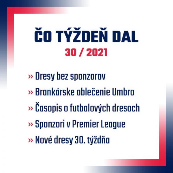 Aj keď podľa dátumu vydania sa jedná už o prvý augustový týždenník, jeho témou budú zaujímavosti z posledných júlových dní. Konkrétne sa pozrieme na tímy, ktoré predávajú svoje dresy aj vo verzii bez sponzorov, ukážeme si unikátne brankárske oblečenie z dielne spoločnosti Umbro a predstavíme zaujímavý projekt časopisu o dresoch z Veľkej Británie. Ďalšou z […]