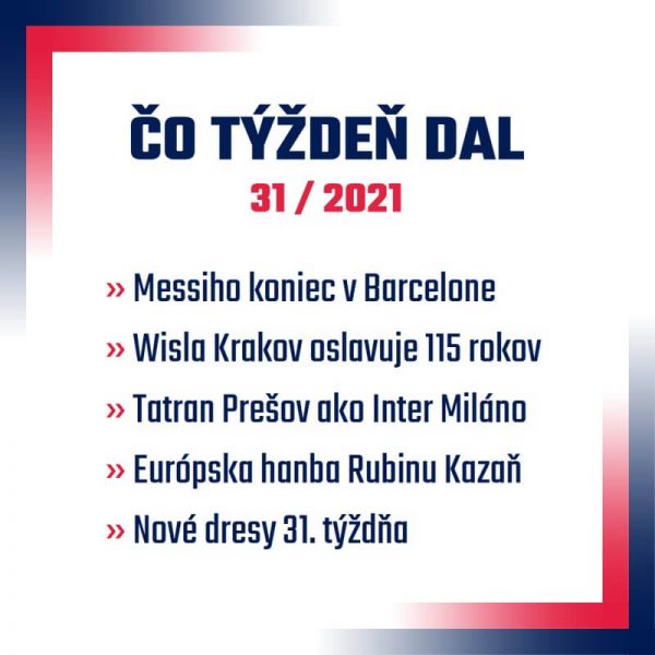 Najväčšou udalosťou predchádzajúceho týždňa je odchod legendárneho Lionela Messiho z Barcelony. Argentínsku hviezdu si v týždenníku pripomenieme obrázkami všetkých dresov, ktoré si počas svojho pôsobenia v tíme Blaugranas obliekol. Ďalej sa pozrieme na špeciálnu edíciu dresov poľskej Wisly Krakow venovanej 115. výročiu založenia klubu, predstavíme si nové oblečenie treťoligového Tatranu Prešov a pozrieme sa aj […]